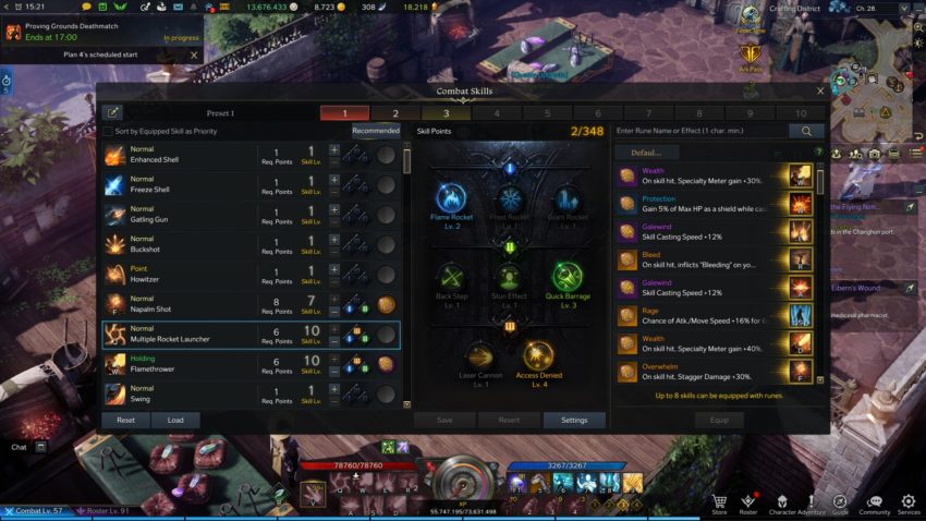 To check your Tripods, hit the “K” key on your keyboard to open up the Skills page. For an example, here are the Tripods for the Artillerist’s “Multiple Rocket Launcher” ability: