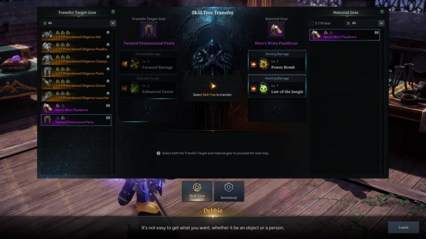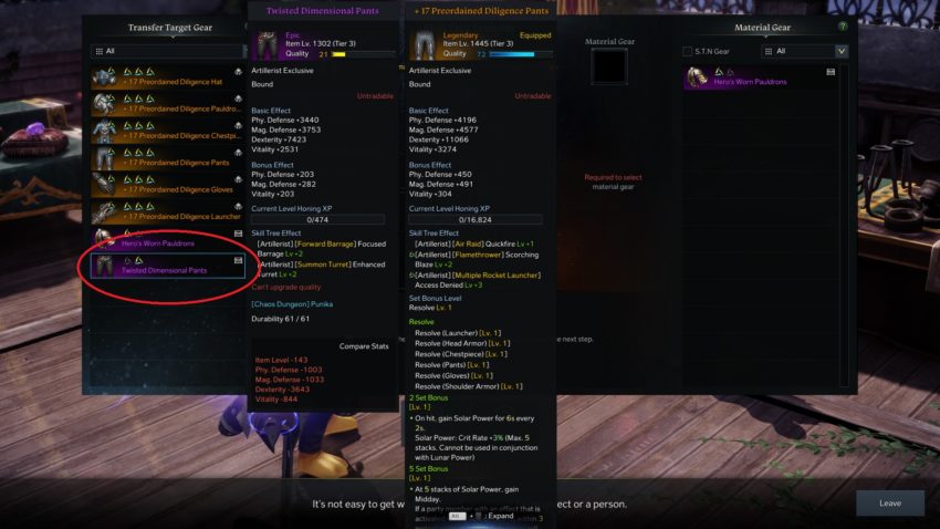 You can then move the Tripod from the gear fodder over to your target gear. Click “Transfer,” and you’re done. Transferring a Tripod to an empty slot will yield higher chances while upgrading or replacing a Tripod can have low success rates like 30% or 15%. You can use Powder of Sage to increase your chances.