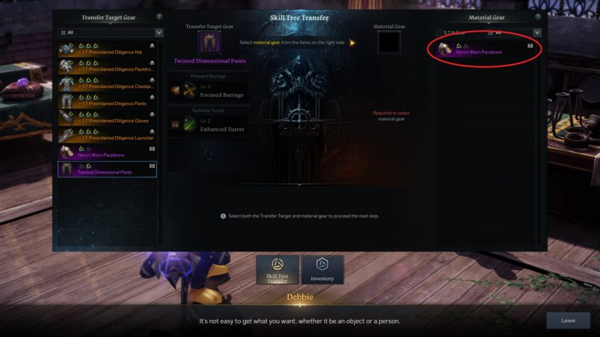 After you get the Tripods you need, go to the “Transfer Skill Tree” mechanic found on every major continent. Here is the NPC in North Vern:
