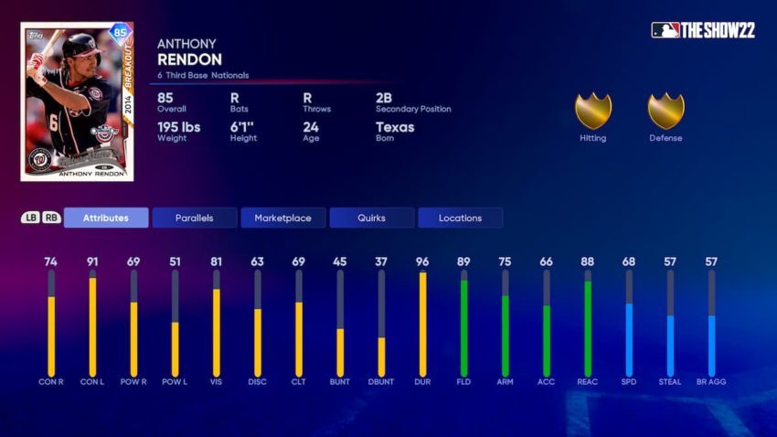 The marquee reward for this Program is the Nationals City Connect jersey. But, don’t sleep on the 85 OVR Anthony Rendon, which should help for those starting out in Diamond Dynasty and need a third baseman. Here’s a look at Rendon’s stats: