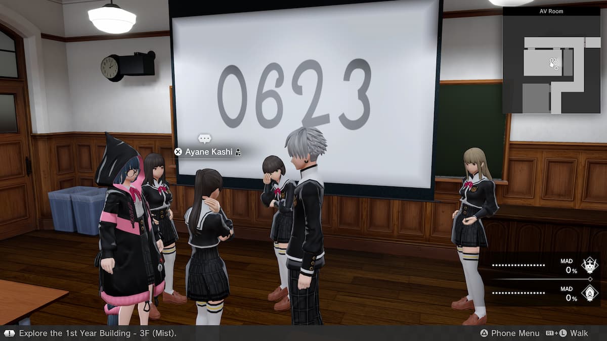 This first locker is mandatory to clear the mist from the second floor and progress through the story. It’s found in the AV room at the end of the second floor hallway. The locker code is 0626. This is the formation date of SMK3, the idol group sitting in the room. This date can be found in one of the notes scattered throughout the room.
