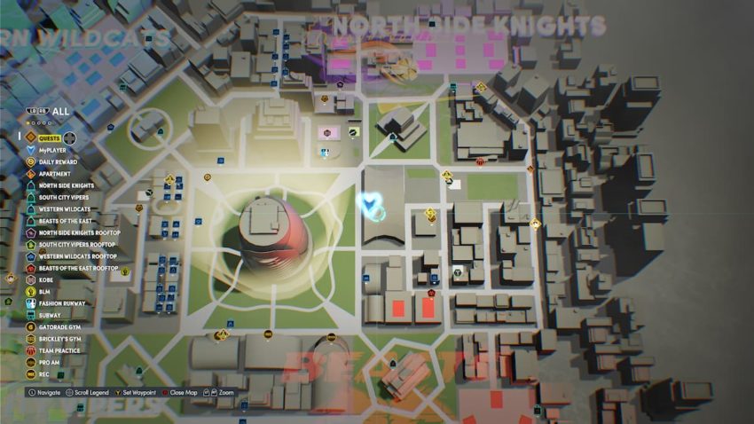 In order to the Gym Rat badge, you will first need to head into The City. Go to the Gatorade Training Facility, which can be found in the middle of the area. Here’s a look on the map: