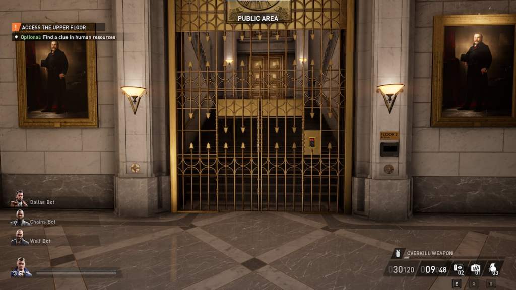 When you’re ready, head to the bank’s main lobby, interact with the Red Keycard lock, and make your way up to the upper floor. Like the other times in Payday 3, ensure no one is watching you to prevent the alarms from going off.