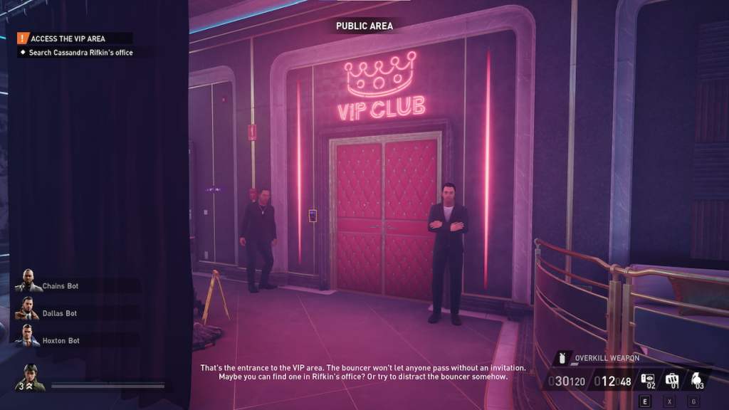 The one who holds the VIP passes is Cassandra Rifkin. She has an office on the second floor, above the VIP room. One of the best ways to reach is by making your way to the entrance and taking a route to the next floor. This is a private area in Payday 3, so anyone who sees you up there does consider you trespassing. The guard who stands in front of this reserved area is not always there, so you need to wait for him to walk away before heading up.