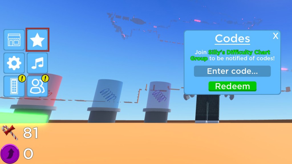 Follow these instructions to redeem codes in Roblox Silly’s Difficulty Obby 2!