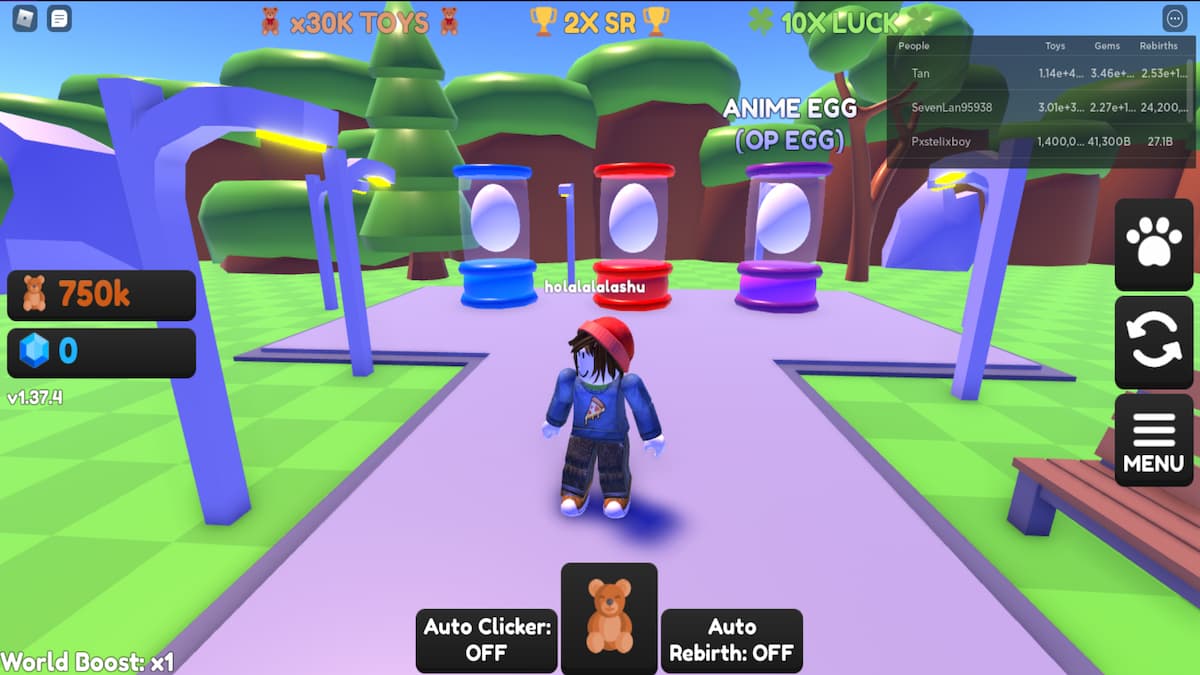 - Open Roblox Toy Clicking Simulator and go to the Menu tab from the right side of the screen.