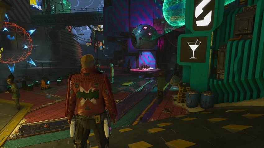 During Chapter 6 of Marvel’s Guardians of the Galaxy, Starlord is freely able to explore Knowhere’s urban landscape. After you leave the bar, you can take three directions. The first left shows the Collector’s Emporium, where you can find a Stan Lee reference. You want to take the second path, to the right of the yellow triangle building. Once you take the turn, you should be able to see the brain.