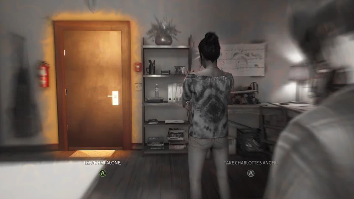 If you take Charlotte’s anger, you will leave Charlotte as a shell of herself, but she won’t be angry at you anymore. However, this will have a larger impact on the final chapter in the game where she will not help you. Additionally, when Alex returns to her apartment, she will blow up on Steph and make her storm out of the room with Ryan following her. This leaves you to search the USB for answers by yourself.