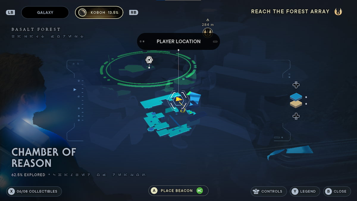 You can find 8 collectibles inside the Chamber of Reason on Koboh. It’s one of the smaller locations you can explore in Jedi: Survivor. This is a hidden chamber full of small puzzles for you to solve. You’ll need to use your Force Powers to maneuver throughout the Chamber. There are several Databank entries for you to unlock, giving you some insight into the Jedi that also attempted the Chamber during the High Republic. There are also more High Republic Jedi chambers for you to find on Koboh.