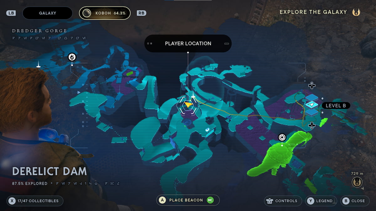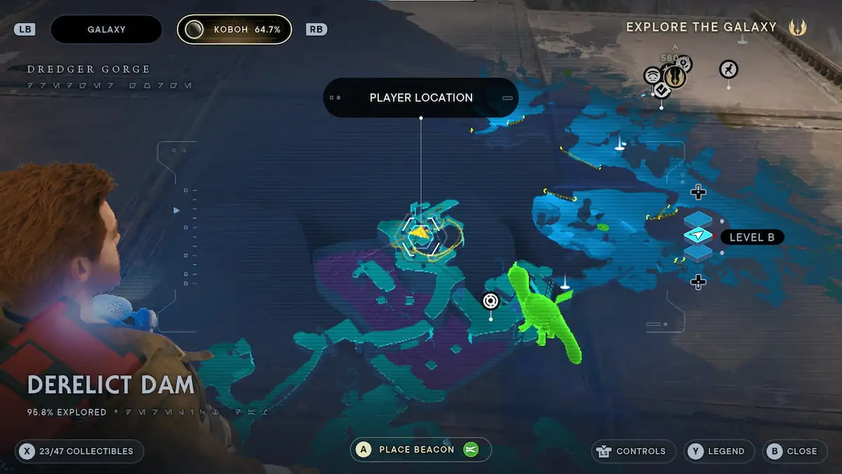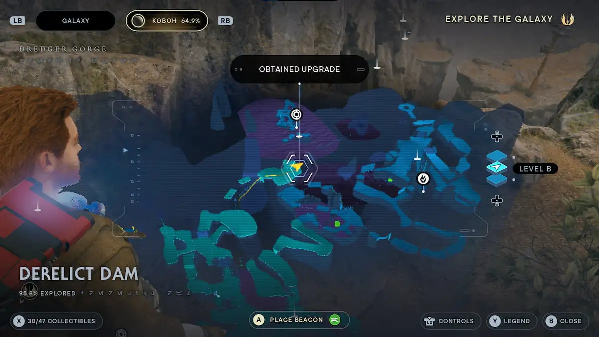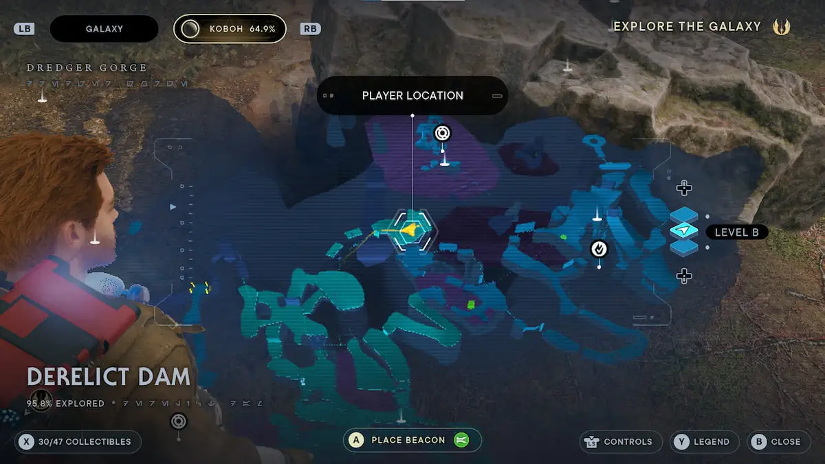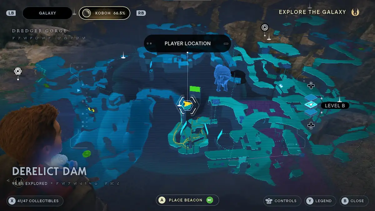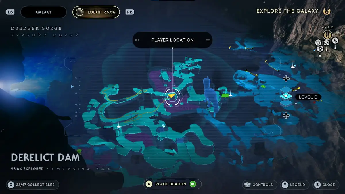 We recommend returning to the Derelict Dam often as you unlock these abilities or wait to return after you’ve completed the main story in Jedi: Survivor. There’s also a location you need to open up by visiting the Boiling Bluffs, a location you can find in the middle of Koboh. There’s a large bird that will take you to the top of the Derelict Dam, opening up the final parts of these collections.