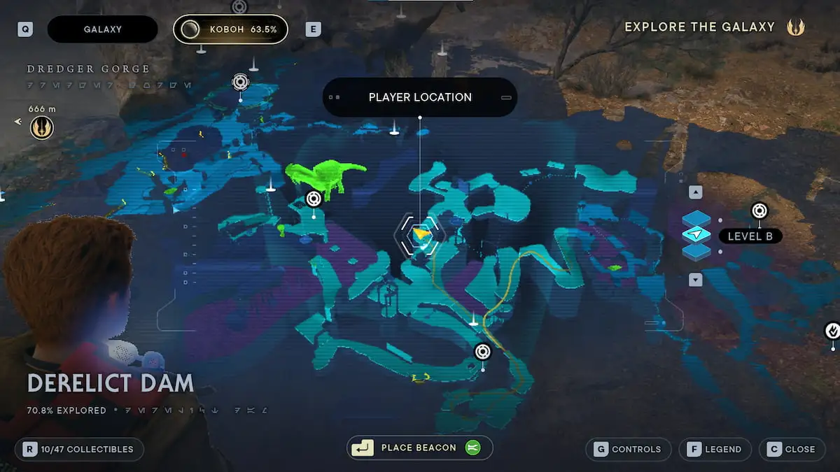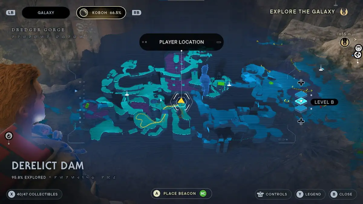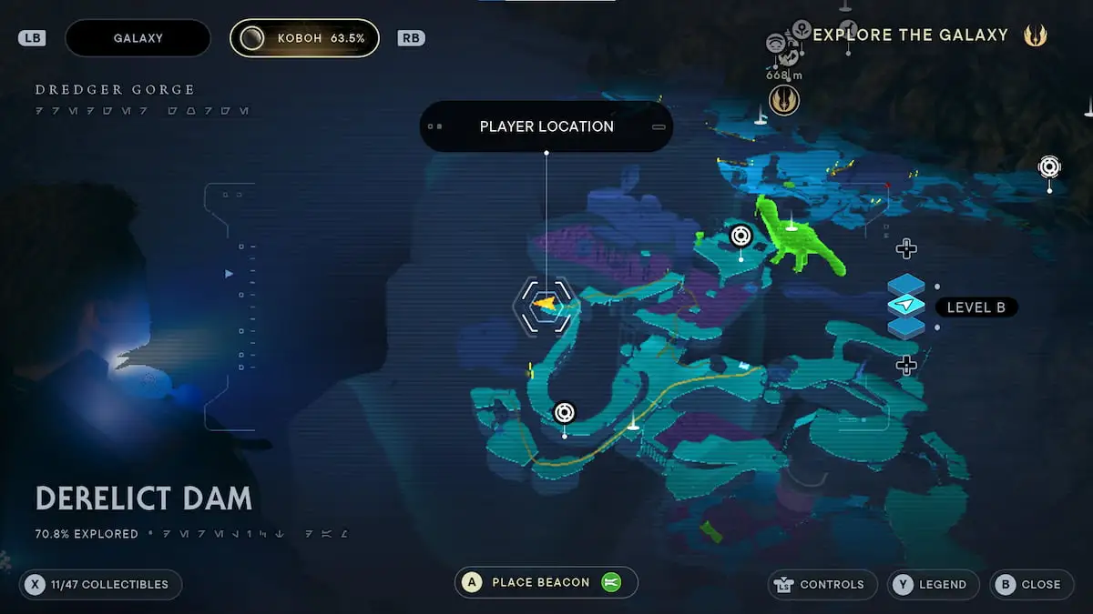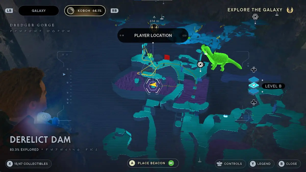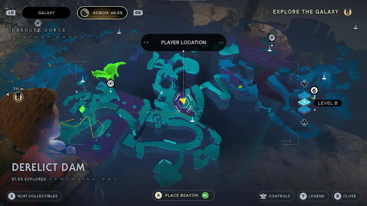 We recommend returning to the Derelict Dam often as you unlock these abilities or wait to return after you’ve completed the main story in Jedi: Survivor. There’s also a location you need to open up by visiting the Boiling Bluffs, a location you can find in the middle of Koboh. There’s a large bird that will take you to the top of the Derelict Dam, opening up the final parts of these collections.
