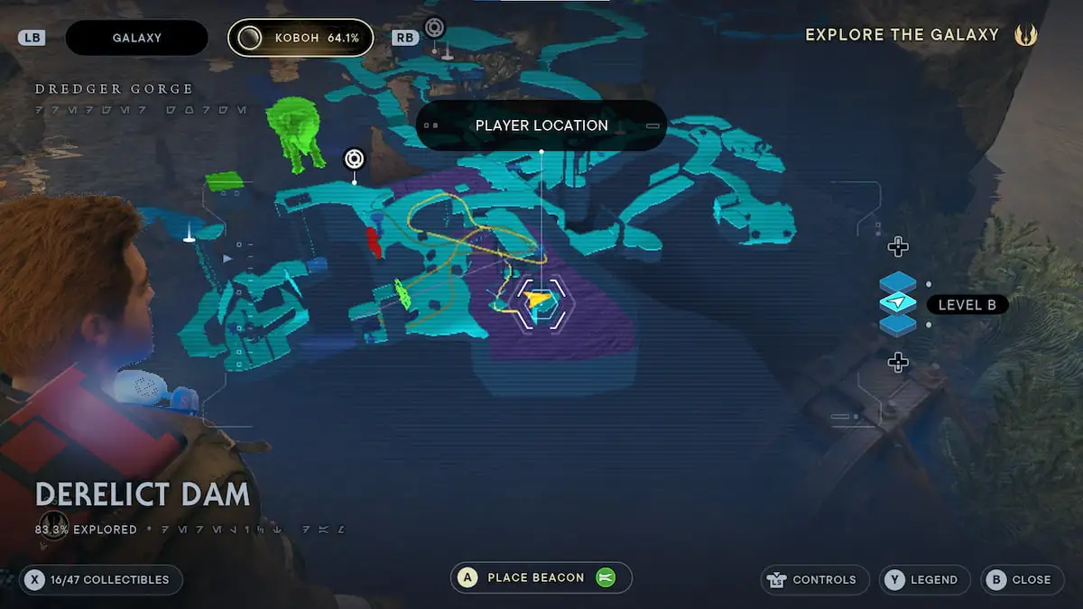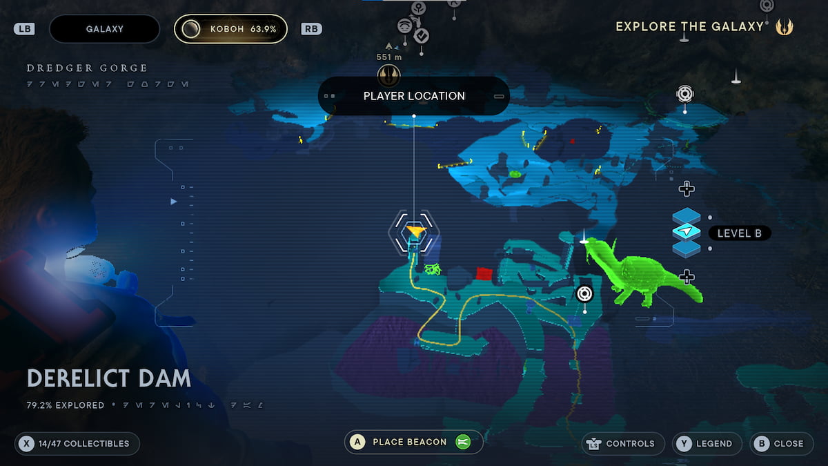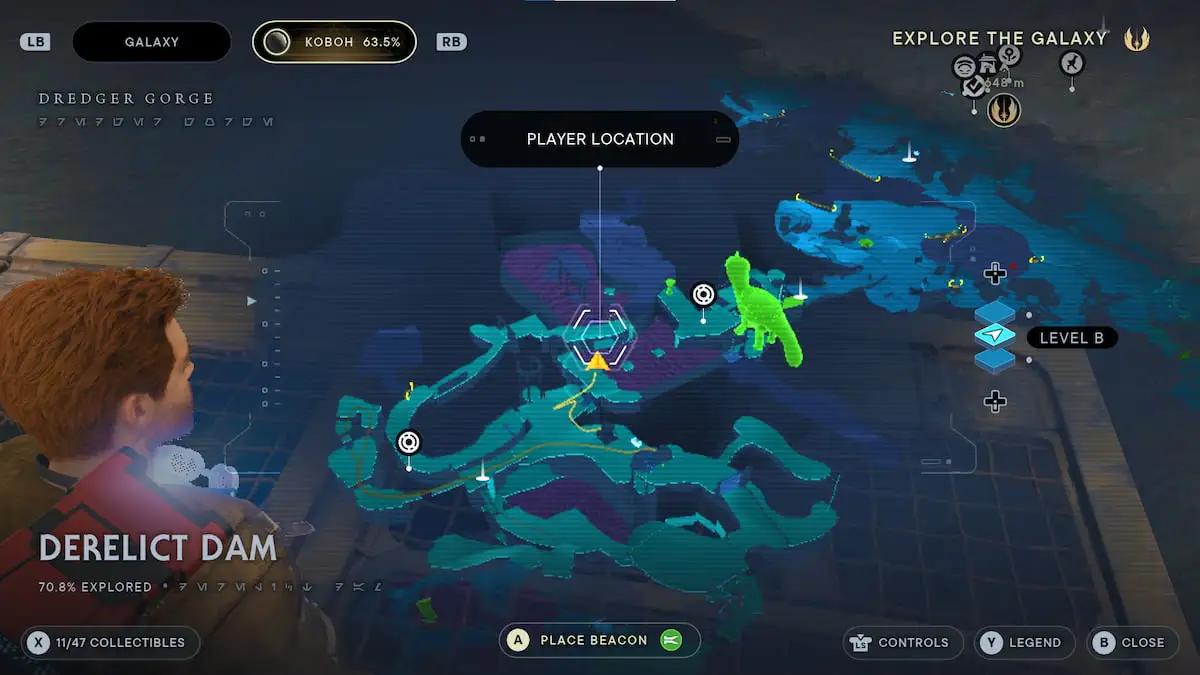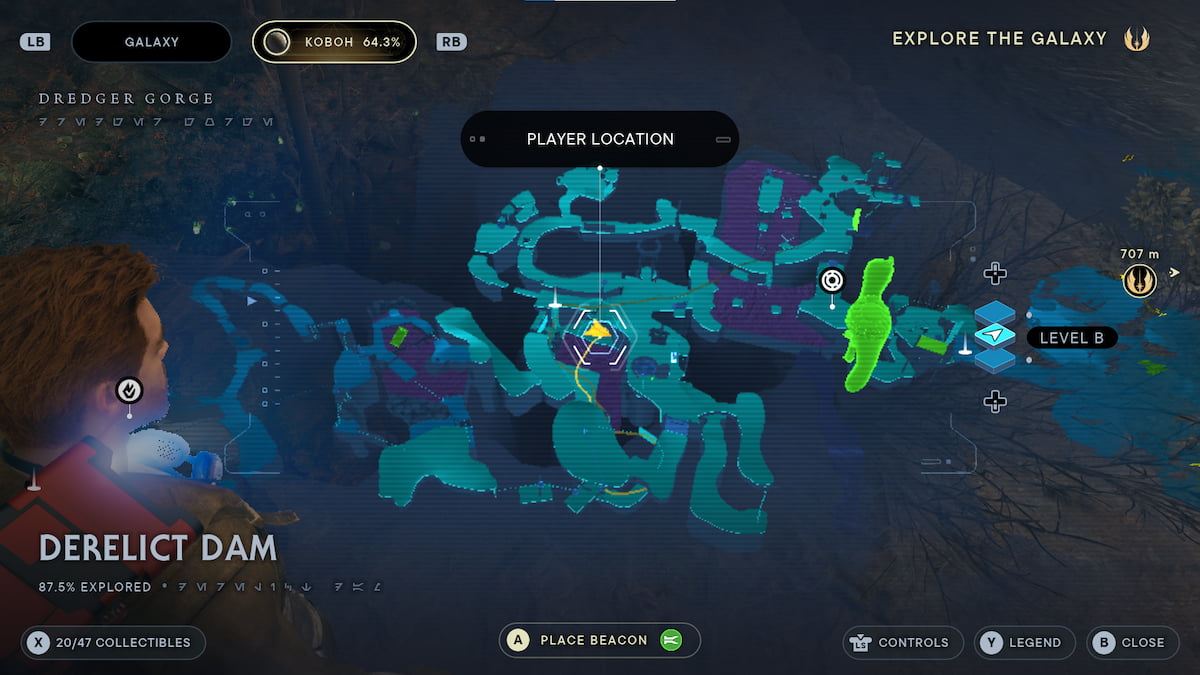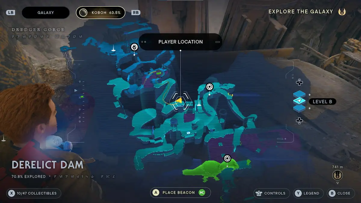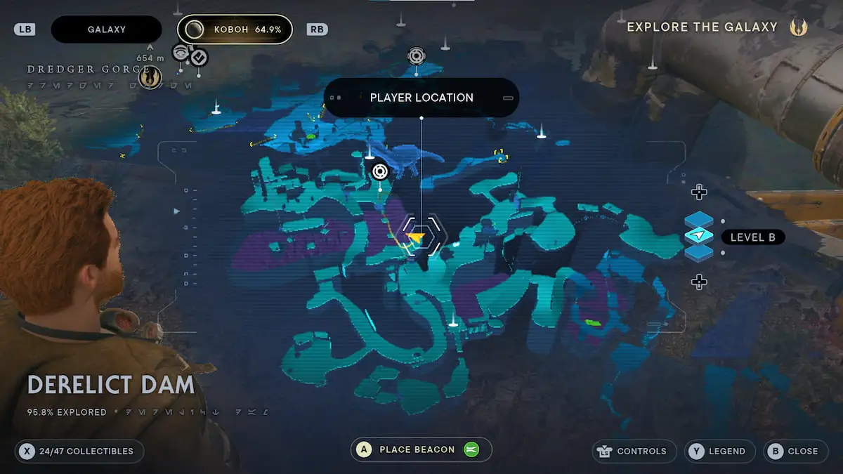 We recommend returning to the Derelict Dam often as you unlock these abilities or wait to return after you’ve completed the main story in Jedi: Survivor. There’s also a location you need to open up by visiting the Boiling Bluffs, a location you can find in the middle of Koboh. There’s a large bird that will take you to the top of the Derelict Dam, opening up the final parts of these collections.