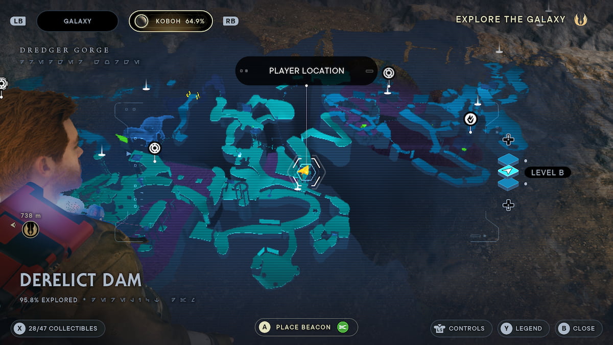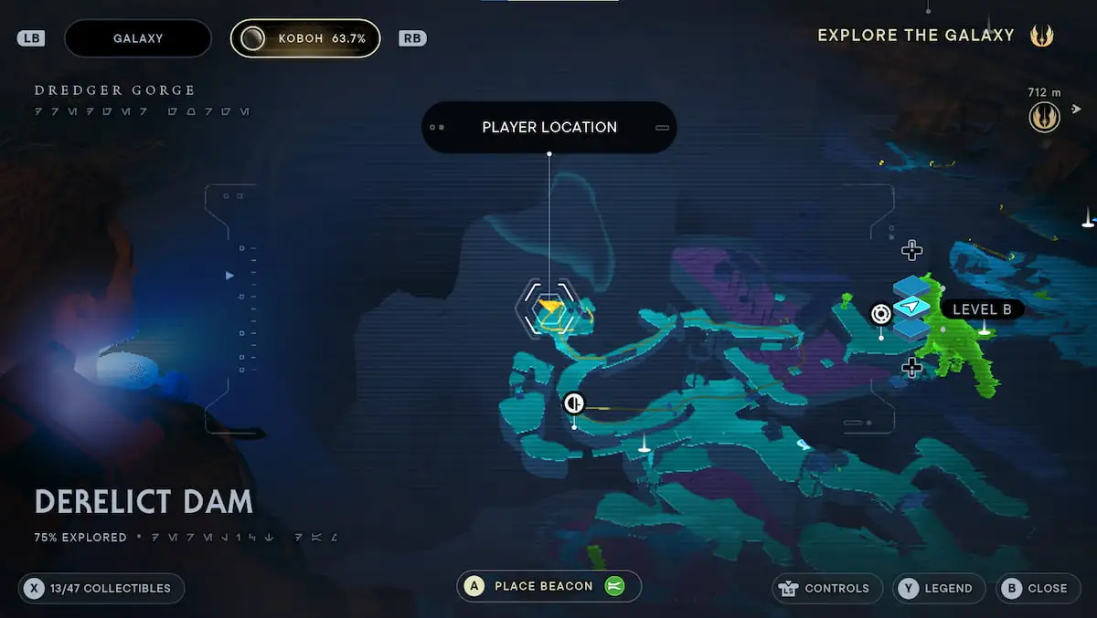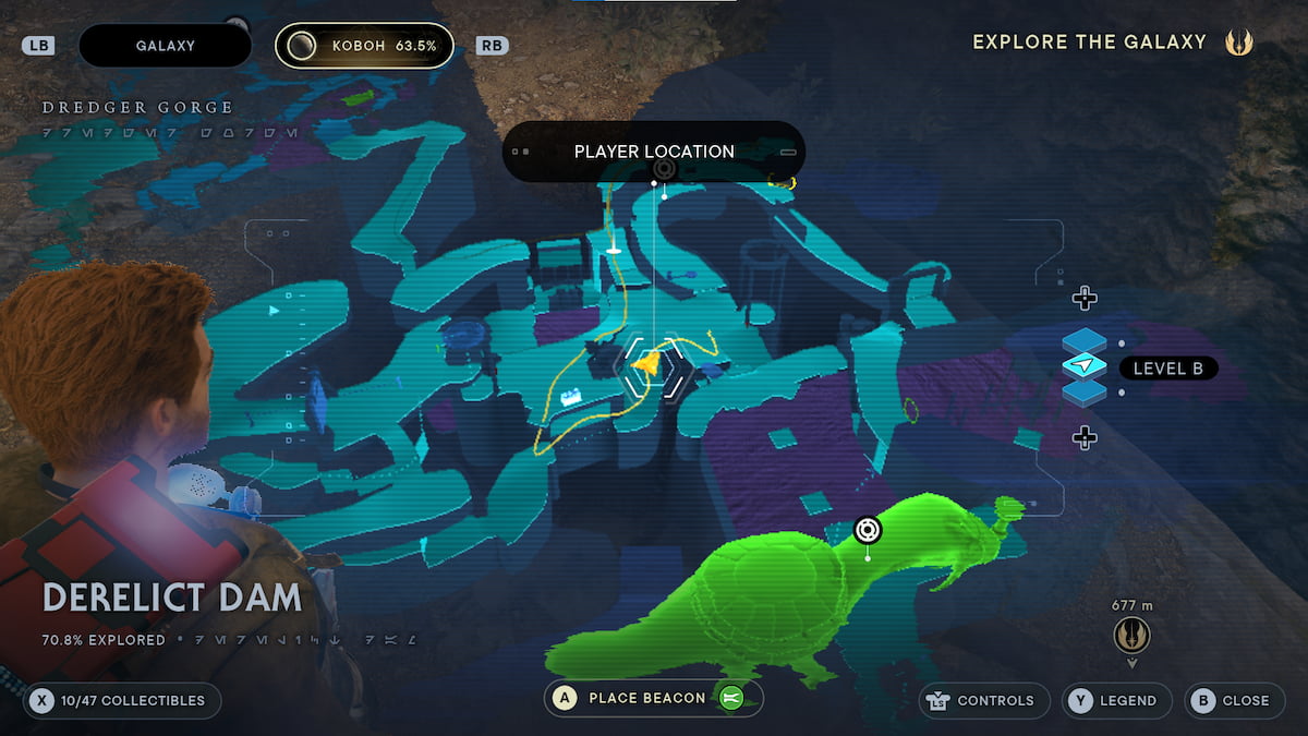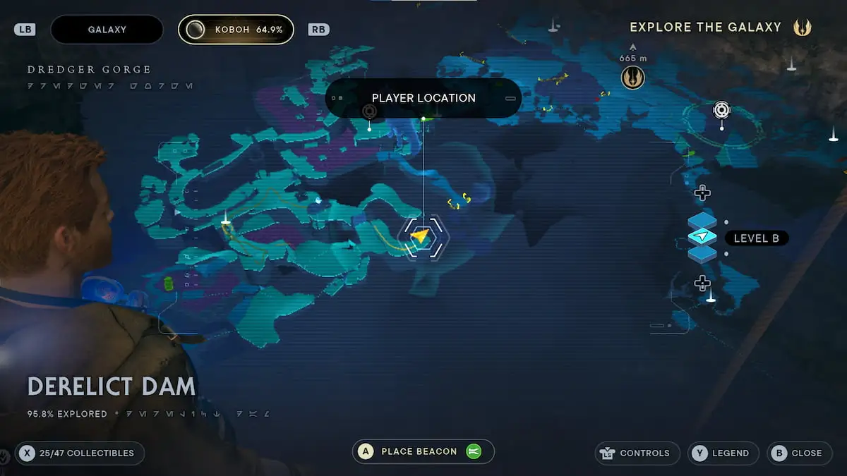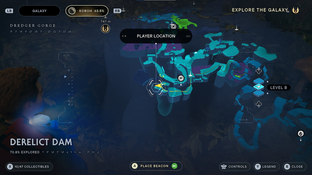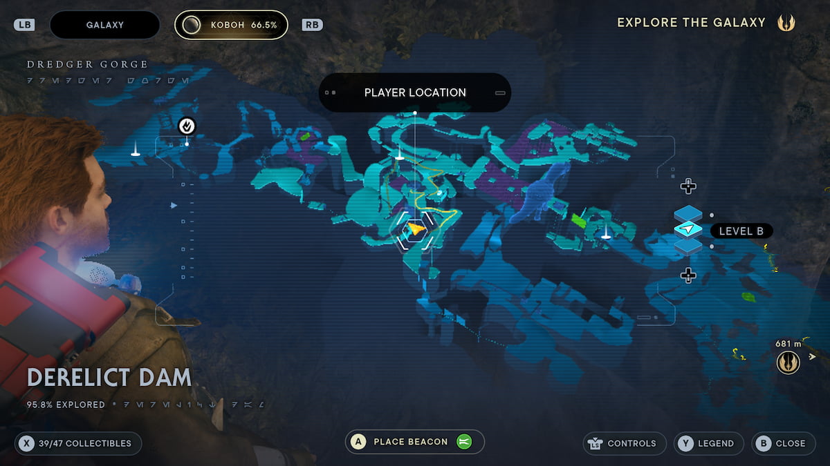 We recommend returning to the Derelict Dam often as you unlock these abilities or wait to return after you’ve completed the main story in Jedi: Survivor. There’s also a location you need to open up by visiting the Boiling Bluffs, a location you can find in the middle of Koboh. There’s a large bird that will take you to the top of the Derelict Dam, opening up the final parts of these collections.