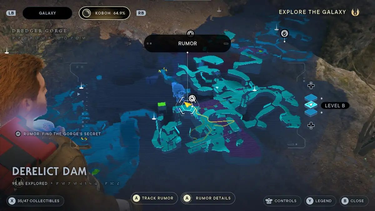 There are 47 Collectibles that you can find in the Derelict Dam region in Jedi: Survivor. There’s a huge amount of items that you can find, and several of them won’t be available until you unlock specific abilities, which you get by working your way through the story. You’ll return to Koboh often to find other collectibles.