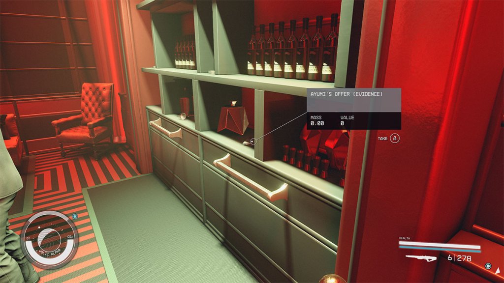 When players first start the Burden of Proof quest, they’ll need to be initiated into the Crimson Fleet. To do this, they must meet an NPC in a bar on Cydonia called Kemp. Before even speaking to him, players can pick up a Slate of evidence from behind him on the table. This is an incredibly easy piece of evidence to get right as the quest starts.