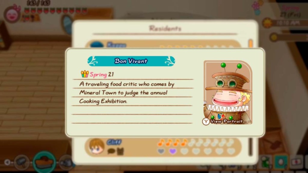 Residents Gift Guide in Story of Seasons: Friends of Mineral Town