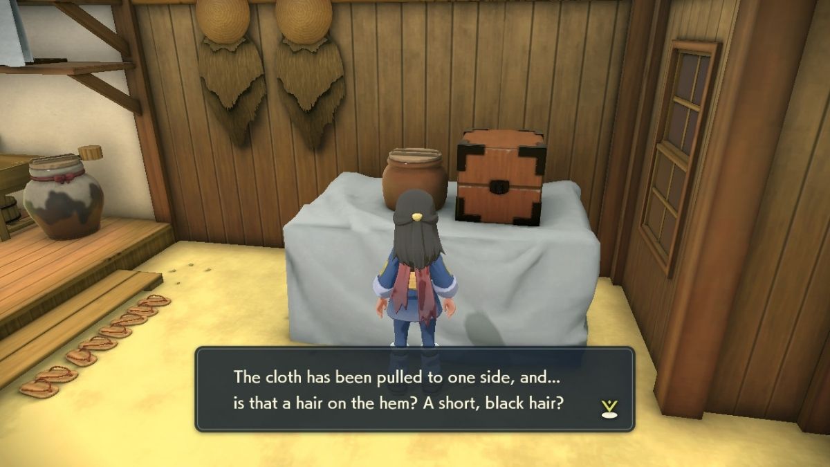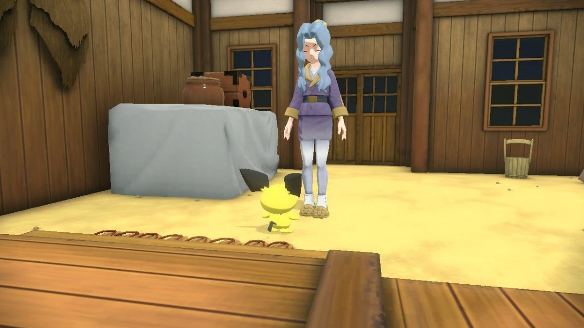 Head inside the house and start your investigation. Interact with the basket on the table. This will cause something to happen in the front of the house. Run over to the front of the house to investigate the table with the chest on top of it. After that, investigate the room divider near the closet on the left side of the house. You will find a Pichu behind it.