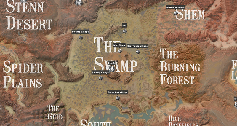 The Swamp might not sound like the most inviting place for a base, but this region hides many riches that are ripe for the taking. Depending on your preference, you can build closer to the border (and thus civilization) or deeper in the mire for a more isolated approach. The Swamp is also bordering almost all other biomes, letting you branch out in any direction you want. Not only that, but the region itself is teeming with life, and has plenty of small settlements, ruins, camps, and more. Simply said, you can indulge in a variety of activities no matter which ones you enjoy.