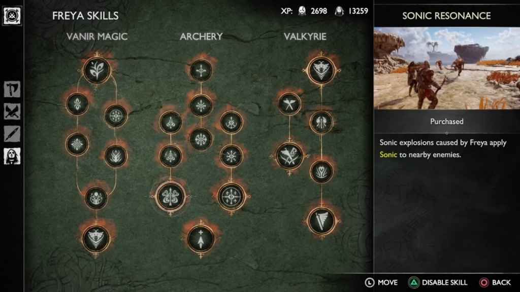 The Sonic arrows are important to Freya’s arsenal and can also prove to be vital in certain situations for Kratos as well. One of the must-have skills for the Sonic arrows is Sonic Resonance. Through this, the explosions caused by the arrows will apply the Sonic elemental damage to nearby enemies. This would be particularly handy when Kratos is overwhelmed and needs time to recover.