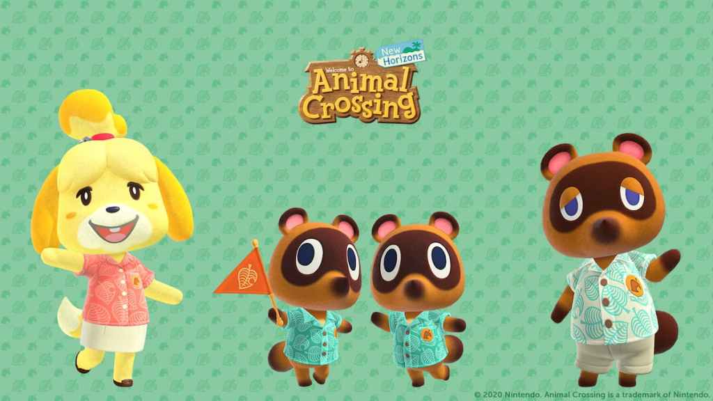 This cute wallpaper stars Timmy and Tommy Nook, accompanied by their Nook Inc. co-workers Isabelle and Tom Nook, against the familiar leaf logo that adorns their company’s aloha shirts as well as the logo for Tom Nook’s business efforts. You can download this wallpaper directly from Nintendo’s birthday website.