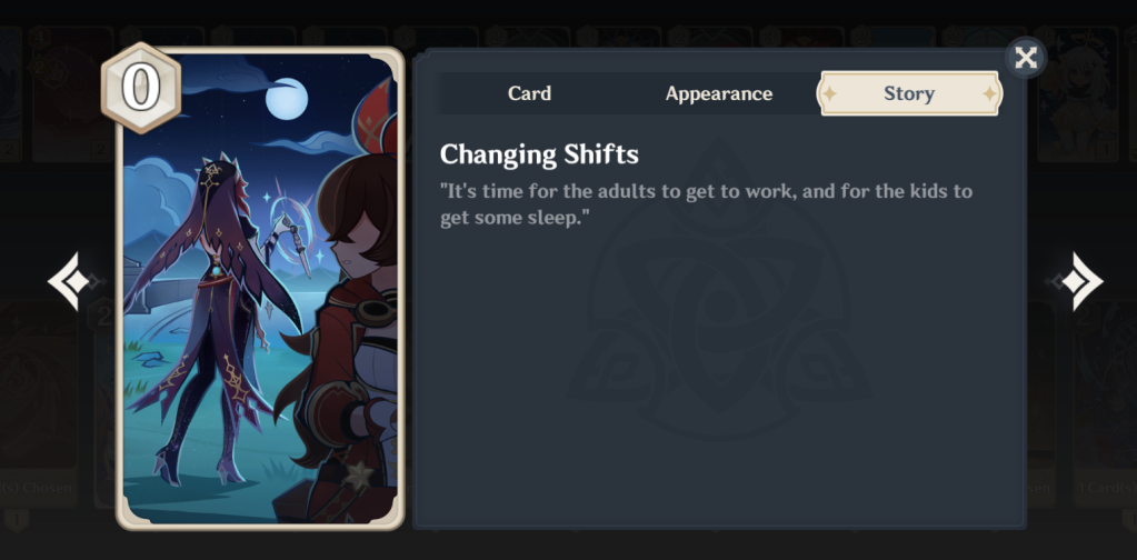 Both the 2-piece and 4-piece set cards are a great addition to any player’s Genius Invokation deck. Once equipped, the Crimson Witch of Flames artifact set will reduce the amount of Pyro dice spent by 1, along with guaranteeing 2 Pyro dice with every roll for the rest of the game. The same mechanic applies to some of the other artifact sets in the TCG, like Heart of Depth or Deepwood Memories, but Crimson Witch makes our list because it can bump up the damage of some of the minigame’s more accessible characters.
