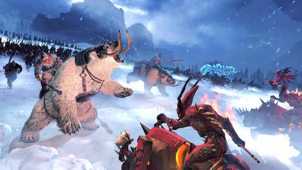 Khorne is the best melee faction in Warhammer III. Unfortunately, Khorne doesn’t have a single ranged unit. The lack of any ranged capability is key to his design. His front-line fighters are some of the best in the game and a natural counter to Kislev’s various legendary lords and army units.