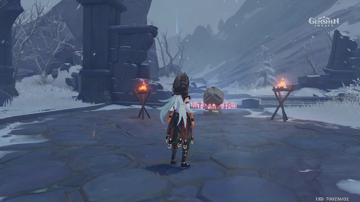 When you meet Albedo, he will ask you to submit to a series of experiments so that he can learn more about your nature. One of them is an intelligence tests, where you will need to solve a nearby mechanism.