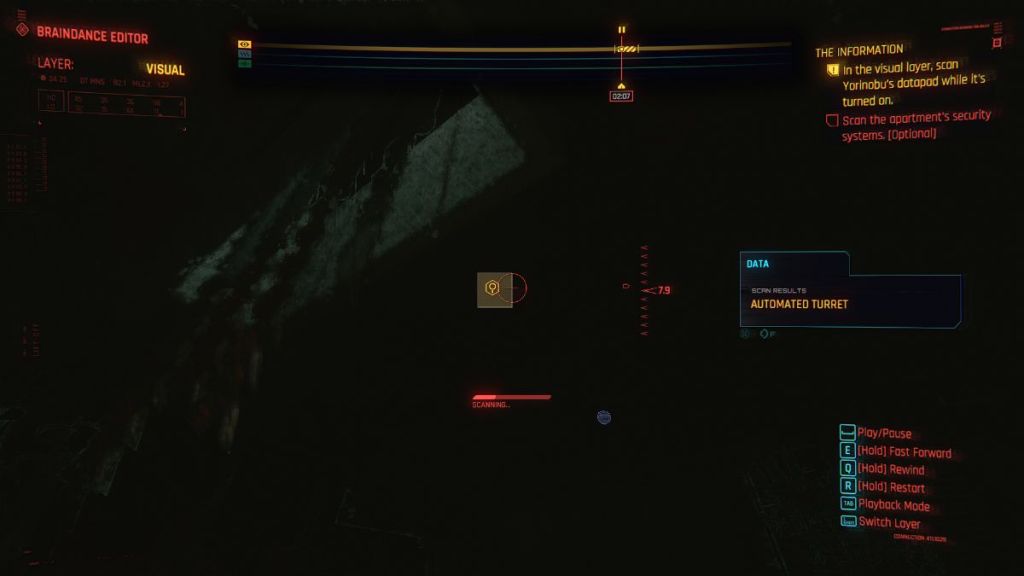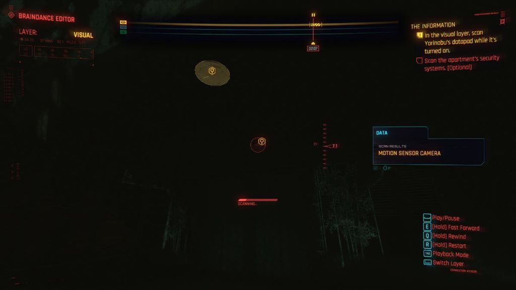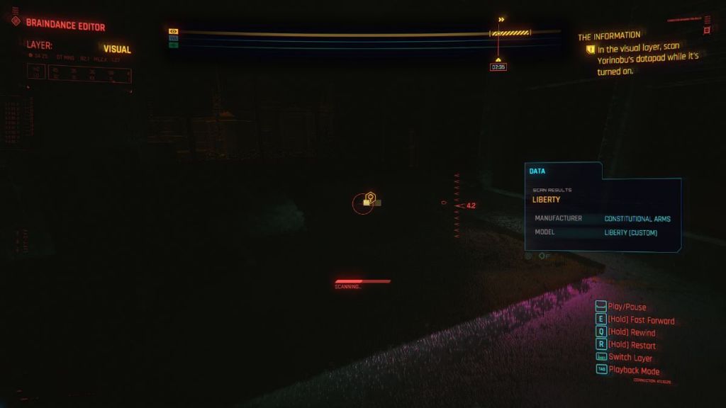 During Cyberpunk 2077’s The Information main quest, you’ll have your first proper introduction to Braindance, a high-tech detective game mechanic. To complete The Information, you need to search through a scene captured by Ev to find clues for a job you are planning. You will need to search through the scene at various times, and because it is your first Braindance, you may find it a little confusing. You will need to find the datapad and the Relic safe, but can also scan the security equipment for some extra information when you play through the job.