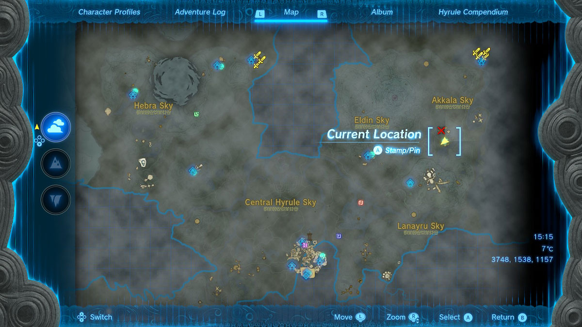 ![]() West Hebra Sky Archipelago -3809, 2757, 0702 | Rocket Flame Emitter Portable Pot Time Bomb | Players can reach this Zonai Device Dispenser by using the Rospro Pass Skyview Tower near Rito Village. It’s further north than the Hebra Mountains Zonai Device Dispenser below. |