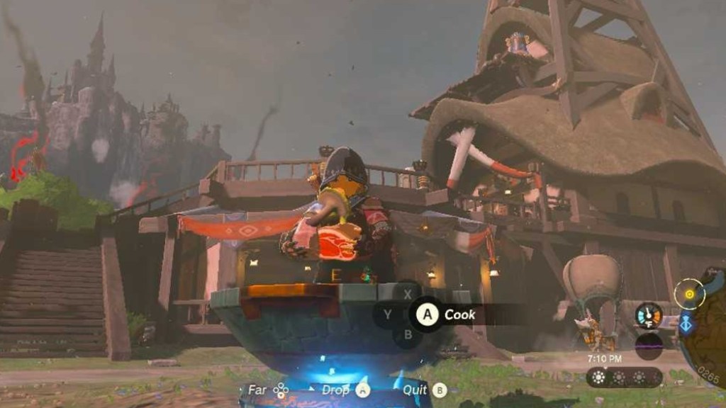 Cooking in Tears of the Kingdom is similar to the previous Legend of Zelda title. Players will first need to find a Cooking Pot that has a fire crackling beneath it. If the fire isn’t lit, a lump of flint dropped with wood under a cold pot can be struck with a metal weapon to get the needed heat going.