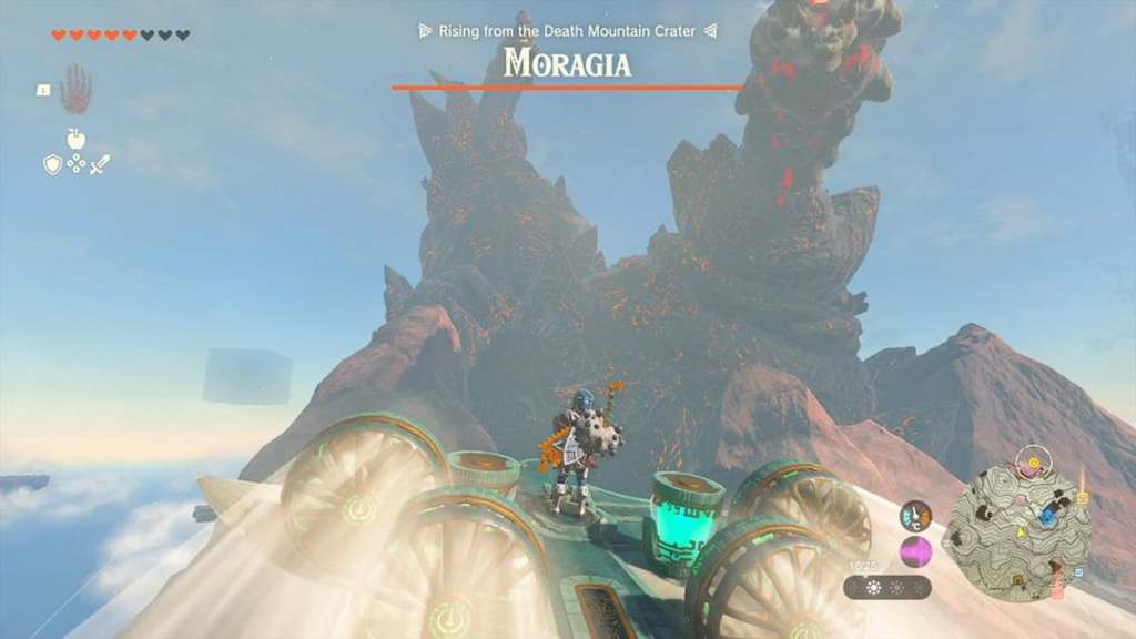 Moragia, Rising from the Death Mountain Crater, is encountered as part of the Goron storyline in Tears of the Kingdom. Once you complete the tutorial sky island quest, you will follow the main questline until you unlock the “Regional Phenomena” quest, creating four golden markers on the map. Head to the northeast marker to start the Goron storyline, where you will encounter Yunobo. Follow the “Yunobo of Goron City” quest, and you will eventually head to Death Mountain.