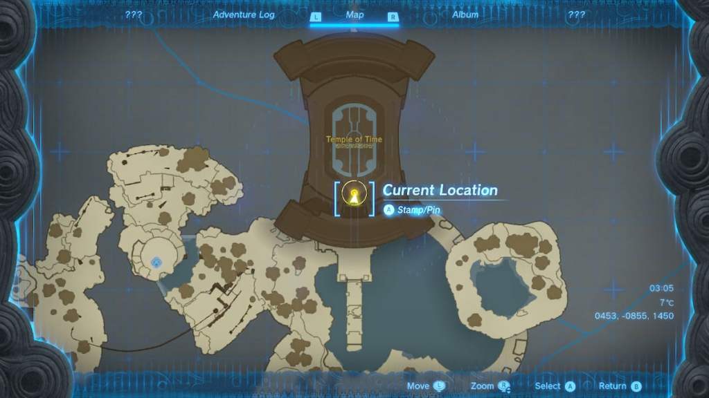 These three Shrines are scattered throughout the island, and Rauru points you in the direction of finding the first one: the Ukouh Shrine. This location is west of the Temple of Time, and you’ll need to climb up the rock to reach it the top.