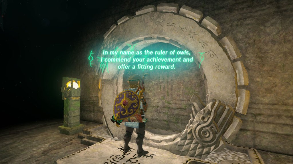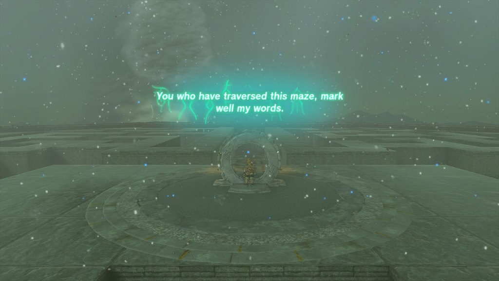 This is a simple Shrine with no puzzle because the labyrinth is the puzzle. However, Link then needs to interact with the terminal at the opposite end of the chamber. This will trigger The North Lomei Prophecy side quest to begin.