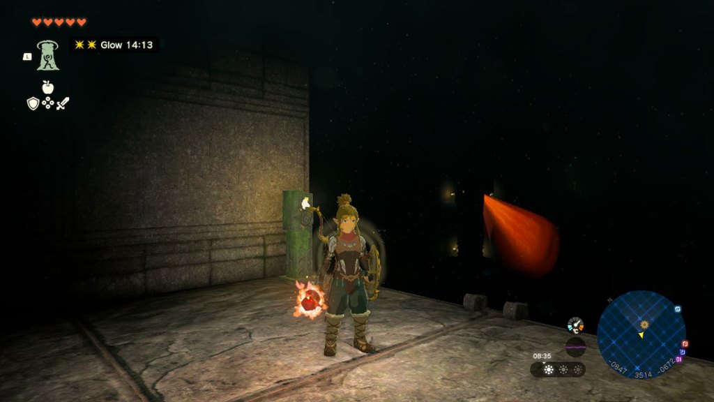 At this point, it’s a good idea to make Link consume a meal that applies the Glow effect or litter the arena below with arrows with Blightbloom Seeds fused to them so Link can see where they’re going.