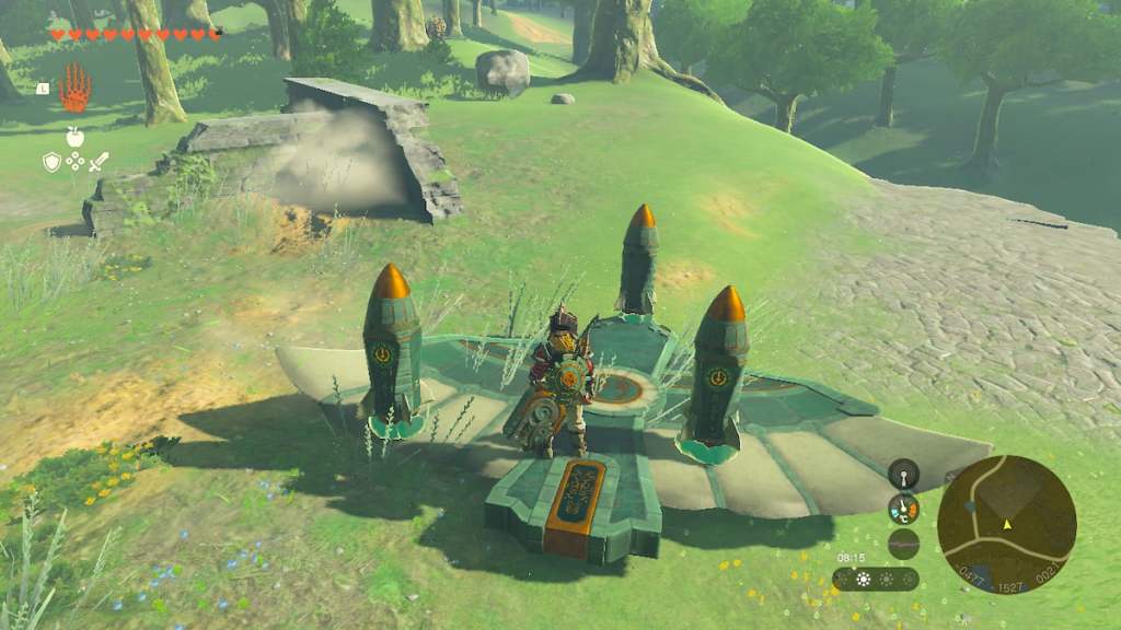 How it works is you track down a chunk of ruins that have recently fallen or one with which you can use your Ultrahand ability. After you’ve found one out in the wild, jump on top of it, and then use Recall to rocket back up to the sky, shooting you into the air. This won’t take you straight up to a Sky Island, but it should help reach one of the smaller ones, giving you a chance to explore some closer to the ground in TotK.