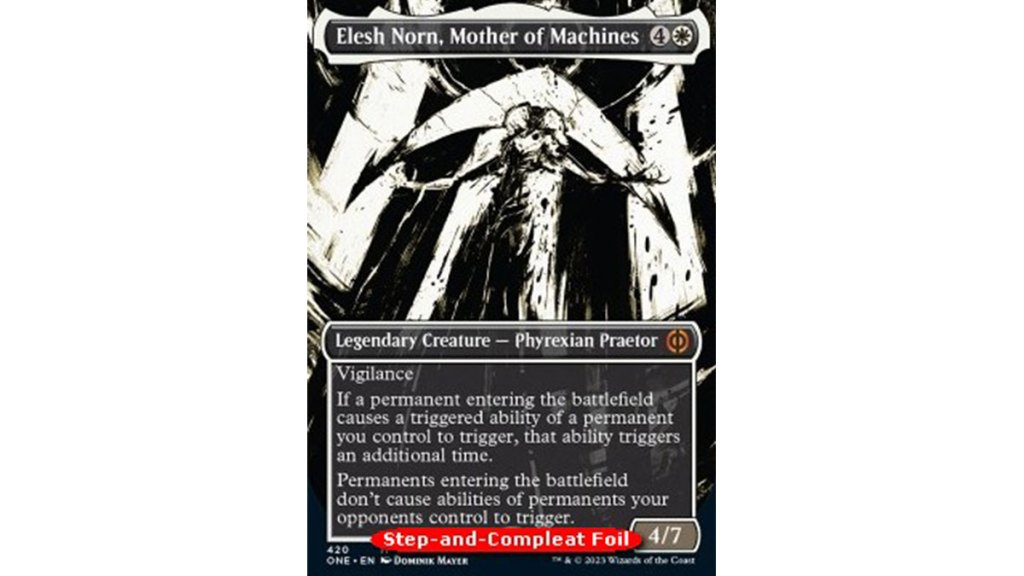 4) Elesh Norn, Mother of Machines Step and Compleat Foil (Junji Ito artwork) – $128