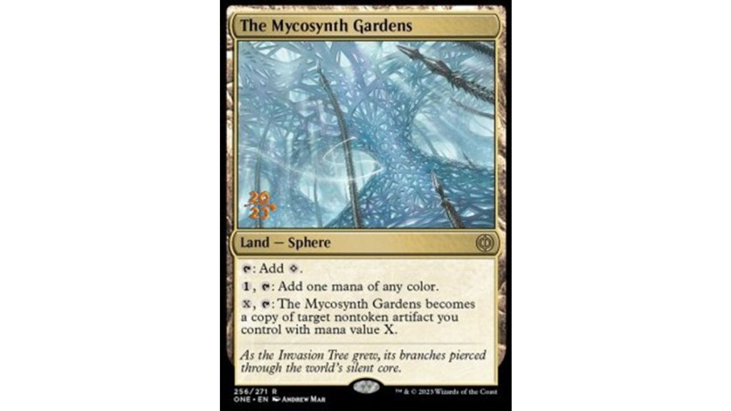 This card is one of the new Lands added with the Phyrexia: All Will be one set. It adds Mana of any color and can become a copy of any Artifact you’ve got. This is why it’s more valuable than your standard land cards. If you get one, you’re pretty lucky.