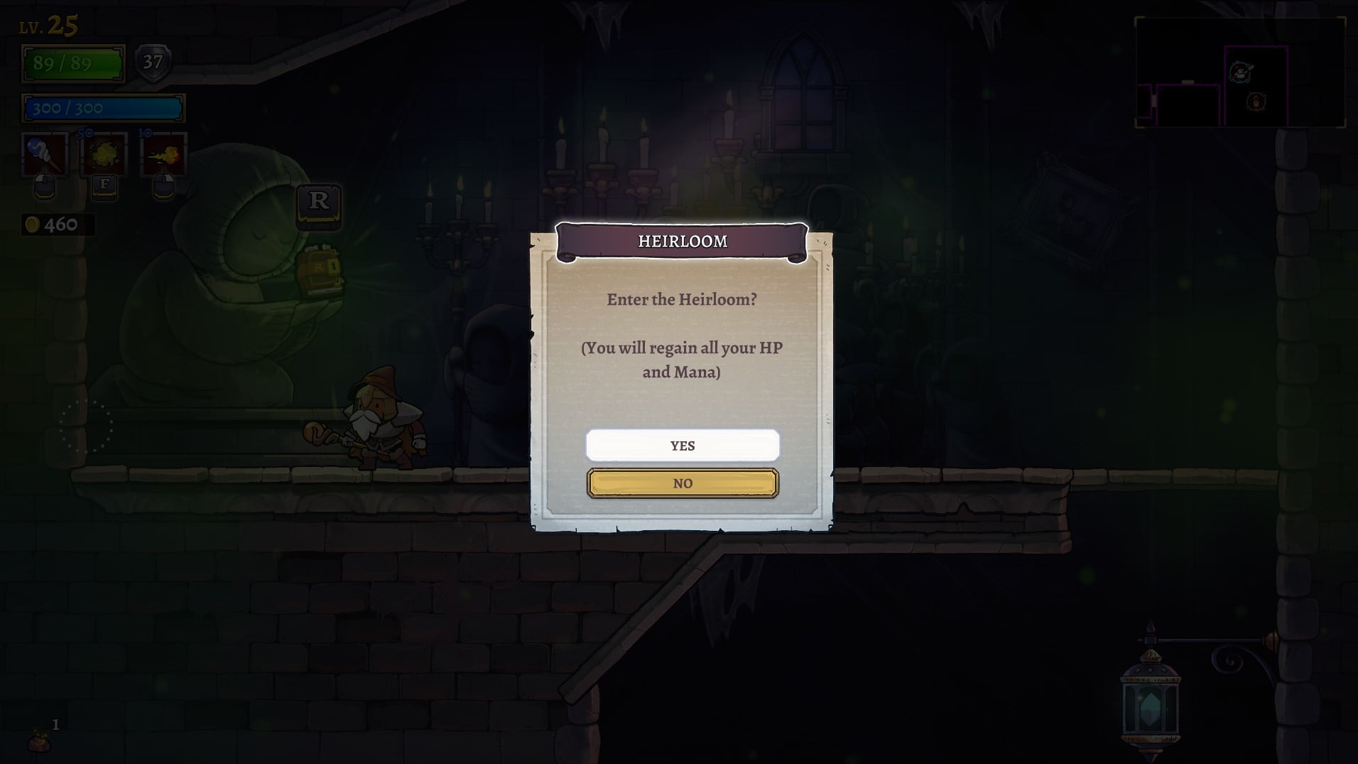 When roaming around the kingdom in Rogue Legacy 2, you may live long enough to encounter a strange statue at the top of a large room that you have to spinkick your way to the top. The statue is holding a peculiar book in its hand. There’s a strange voice that speaks to you, offering you the Power of Empathy if you can pass its trial. Should you choose to accept, the statue restores your health and mana, sending you into the test. You have to compete against its tricks to make it to the end.