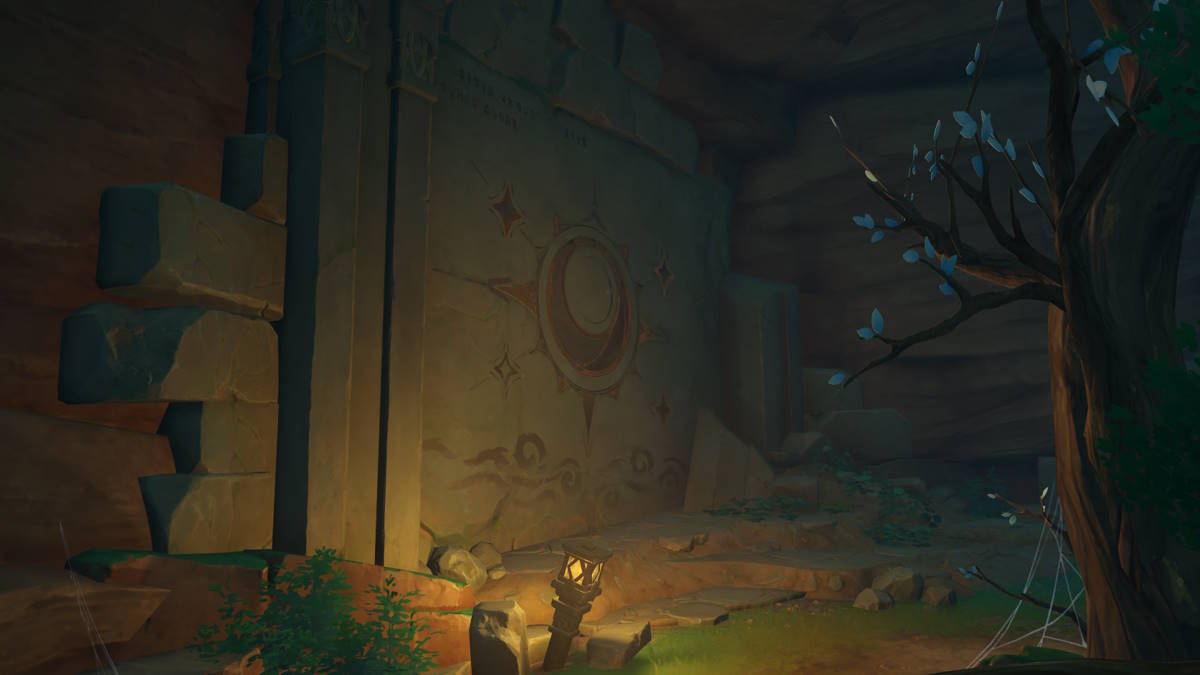To reach the first Ruin Mural required for The Saga of Mr. Forgetful, enter the ruins and follow the tunnel down the stairs until you reach the first circular door that opens into the larger main room. You may remember this location from seeking out the Star-Shaped Gems. From here, turn left and look for an owl marking on the wall near the bottom of the steps. Use your Peculiar Pinion at the marking and a tunnel to the new room will open up behind you. You can find the first mural you’ll need to photograph by looking up through the broken ceiling.