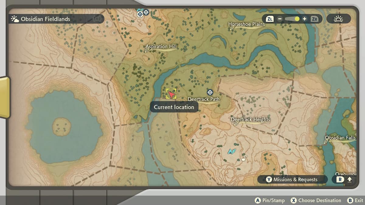 Directly after starting the quest, head just west of Deertrack Path, an area in the center of Obsidian Fieldlands. This location is known for having a heavy population of Kricketot, all of which are remarkably easy to catch. Though, they do disappear if you don’t throw a Poké Ball right after one spots you, so make sure you have a fast trigger finger.