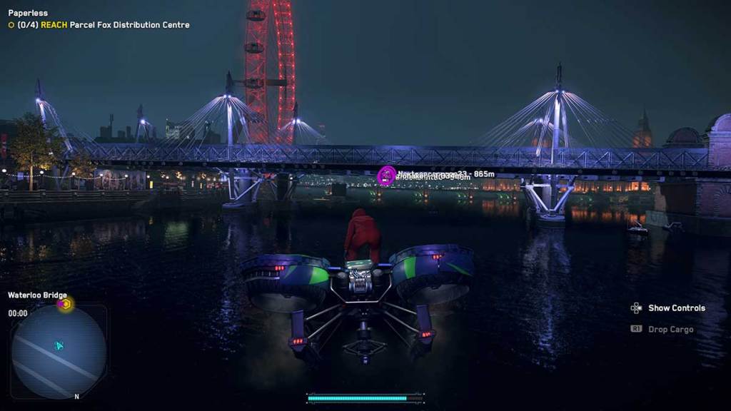 Once you’ve transferred all the funds out of the bank, you’ll need to make a swift exit to Parcel Fox HQ. Bagley brings four speedy drones to the side exit of the bank. Don’t try to drive to the location because you’ll be much slower than everyone else. These drones don’t fly high, but they’re modified cargo drones that move faster than any vehicle that you’ll be able to get your hands on. Plus, they can fly over the water. Make sure you’re well below the bridges as you go under them. We encountered an issue where our Operative glitched into the bridge, and we had to quit the mission.