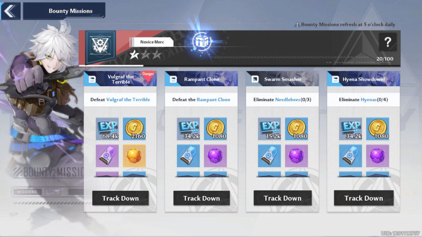 Every day brings four new Daily Bounties, available in the Recommended section of the Adventure log. These tasks will take you to fight various world mini-bosses and defeat a few specific enemies. You’ll receive experience, Gold, a single Black or Gold Nuclei, a password chip, and a few upgrade materials as well. Later in the game, these won’t be enough to give you a whole level up, but they go a fair way to getting you to your next goal.