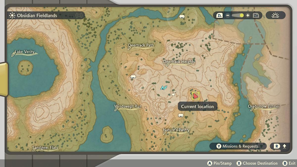 If you’re feeling more daring, you can also find an Alpha Paras in Nature’s Pantry, right next to where a ton of Paras spawn at. If you can catch this Pokémon, you’ll be able to move on to the next step of the quest with no evolutions required. Below is a screenshot showing the spot where we found both a horde of Paras and the Alpha Parasect in the Obsidian Fieldlands.