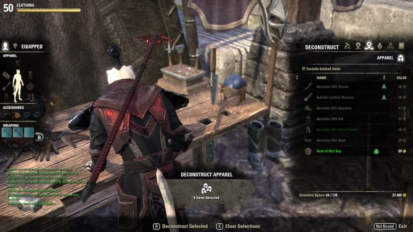 Before you can engage with Writs, you need to level your professions to at least Level 6 — but preferably, Level 10. This level requirement is easily accomplished by deconstructing various objects in your inventory, which you can do at the appropriate workbench. Here is a list of the workbenches and what they can deconstruct: