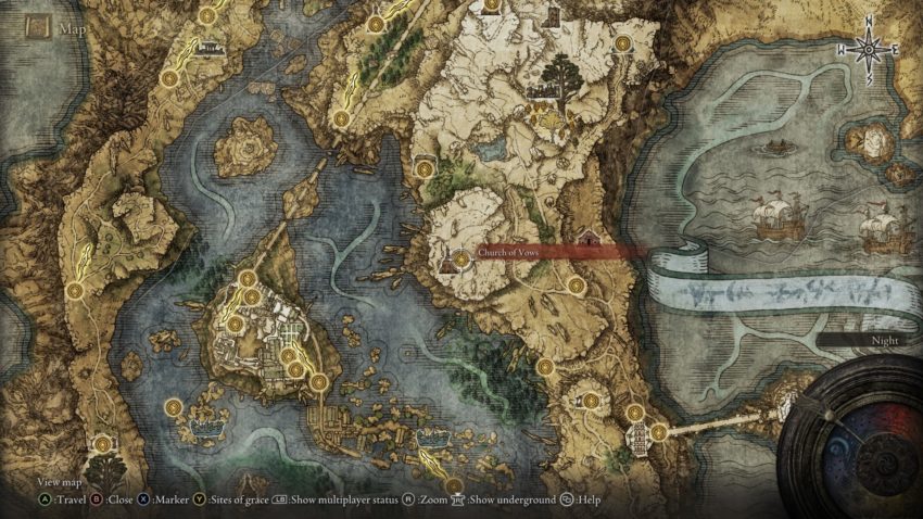 Request absolution requires a rare key item called Celestial Dew. Once it’s in hand, head to the Church of Vows in Liurnia of the Lakes.