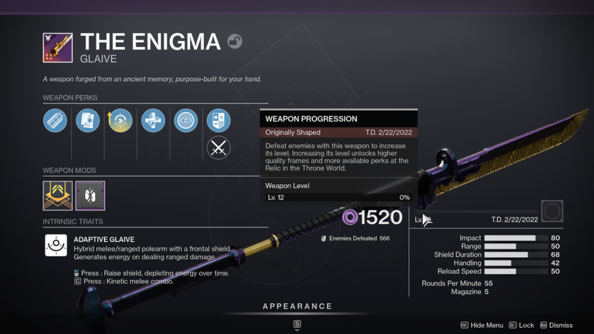Once a weapon is Level 20, all perks and enhanced traits are available to be used on that weapon. Craft a weapon, use it while you play, and reach Level 20 to fully complete a crafted weapon’s journey.
