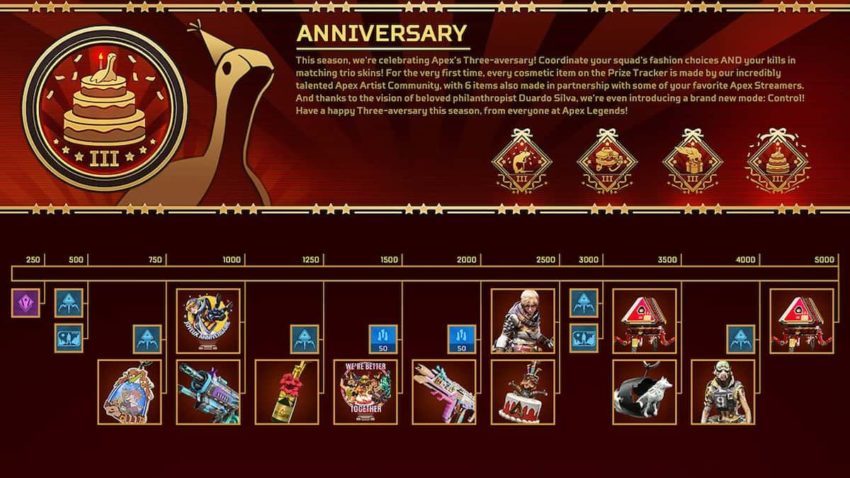 The Collection menu will undoubtedly be the highlight of the anniversary, with it offering 25 brand new cosmetics, such as Bloodhound’s Prestige skin and other Legendary skins. It is said this special bunch of items will be obtainable through buying a new type of pack — each guaranteeing at least one collection cosmetic. Meanwhile, the event’s Rewards Tracker will gift players a pair of these packs, as well as Squad skins, just by amassing XP in matches.