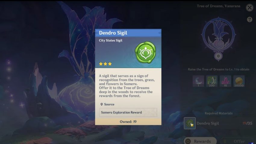 You will be able to use Dendro Sigils at the Tree of Dreams. This is similar to Inazuma, where you spend Electro Sigils at Sacred Sakura to get various favors. Each time you spend 35 Dendro Sigils at Tree of Dreams, the tree will level up, and you’ll get different rewards. The amount of Dendro sigils it will take to level up each time remains the same no matter your individual level.