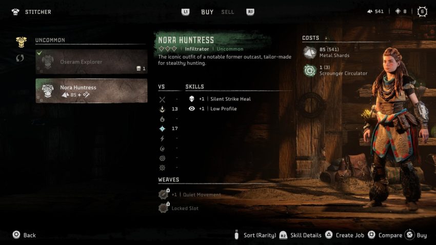 When you return to the village after the encounter within the “To The Brink” questline, a bell will be rung and business is now open throughout Chainscrape. You can now change your outfits at the Stitcher, who is left of the Workbench, and your stash. From here, you can get the Zero Dawn-inspired Nora Huntress costume, which gives one point to Silent Strike Heal and Low Profile, and the melee combat-focused Oseram Explorer, which boosts your Critical Strike and Power Attack stats by one.