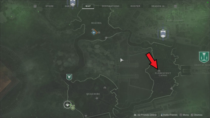 To start your expedition to the Sepulcher Lost Sector, you will want to land at the Quagmire area in Savathuns Throne World. From here, immediately hang a right until you enter Savathuns castle. It may be confusing to navigate through, but be sure to keep right, and you will eventually get to the Florescent Canal area. Once here, you will want to go to the left side of the area and find a large monument. Under this monument, you will see a small entrance that leads down into a hive tomb. This is where the Sepulcher Lost Sector begins.